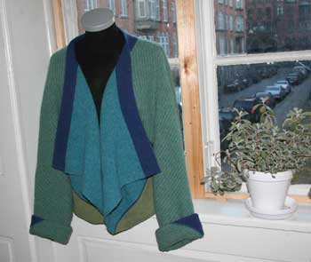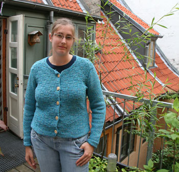 Blablabla: Altså detaljerne i strikket og opskriften gennemarbejdethed er helt i top. At ærmerne er alt for lange er tilgengæld særdeles not hot, men det er nu ikke fru Falkenbergs skyld. Jeg prøvede nemlig en opstrikket model i strikkebutikken med lange ærmer (opskriften er lavet med to ærmelængder), og den var alt for kort på ærmerne, så derfor forlængede jeg den, da jeg strikkede. Nu er ærmerne bare aaaalt for lange - så næste gang må jeg hellere holde mig til Fru Falkenbergs anvisninger, frem for at stole på en tilfældig opstrikket model i en (tilfældig) strikkeforretning. Først besluttede jeg at trævle hele møjet op igen, men da jeg skal starte stort set helt forfra, vil jeg hellere strikke den en anden gang i noget andet garn, og så bruge den her et sted hvor der ingen spejle er... (Huset på Møn er et godt bud - jeg tror den skal flytte derned.)