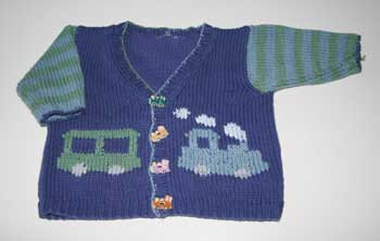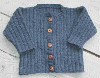 Opskrift: "Cashmere Deluxe Cardigan" fra Knitting for Baby" af Melanie Falick og Kristin Nicholas.