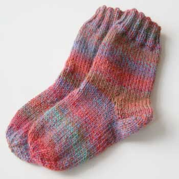 Blablabla: Sokker strikket for at teste Admiral-garnet, inden det blev købt ind til butikken.
